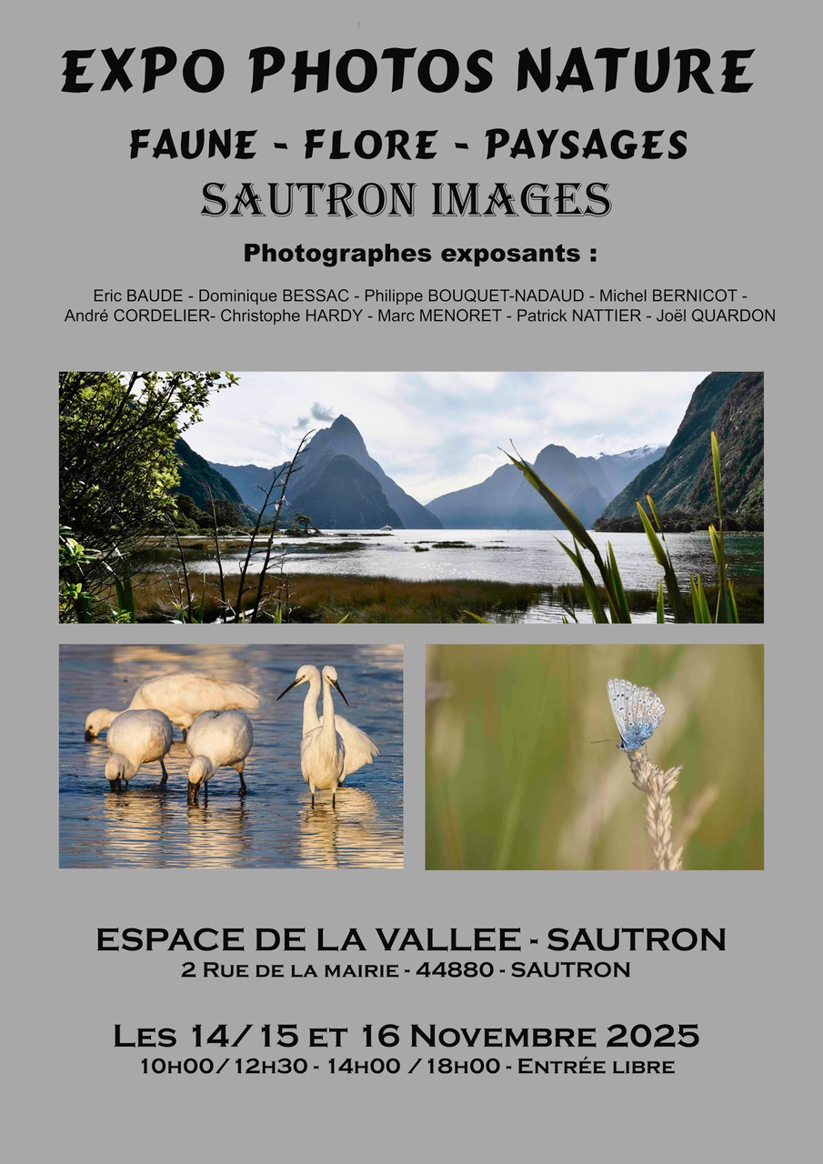Plusieurs adhérents et photographes du Club Photo Sautron-Images exposent à la salle ESPACE DE LA VALLÉE à SAUTRON le vendredi 14, samedi 15 et dimanche 16 Novembre 2025.